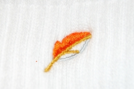 社交運、人気運を高める、鮮やかなオレンジのワンポイント刺繍が両足首の外側に入っているオリジナル テニスソックス。 素材:綿・アクリル・ナイロン・ポリウレタン